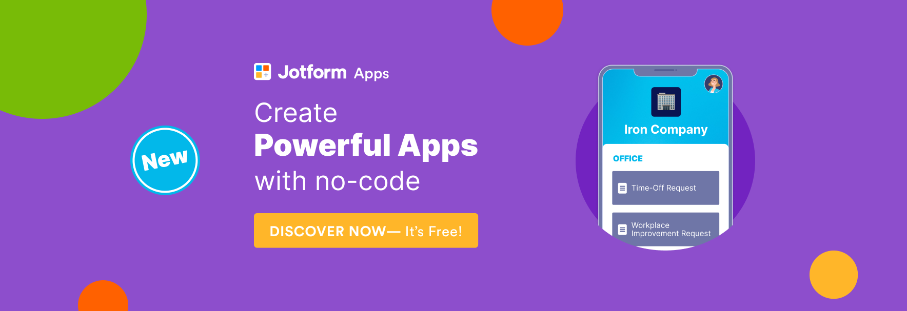 Creating a form is easy, but getting people to fill it out can be more challenging. That’s why it’s important to select a medium that your users will respond to — namely, a mobile app. Jotform offers mobile-responsive forms, but if you want to go a step further, you can build an app for your users to enhance their experience with your business using Jotform Apps.