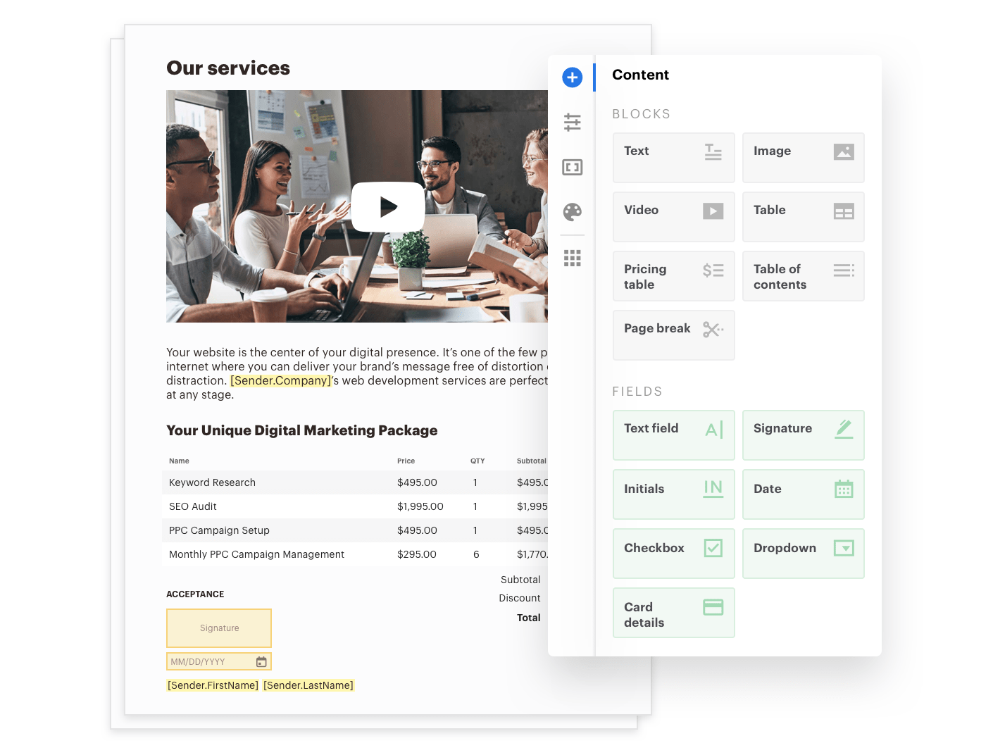 Though many love PandaDoc for its e-signature abilities, this platform does much more than simply collect signatures. Users can create sales documents — such as contracts, proposals, and interactive quotes.