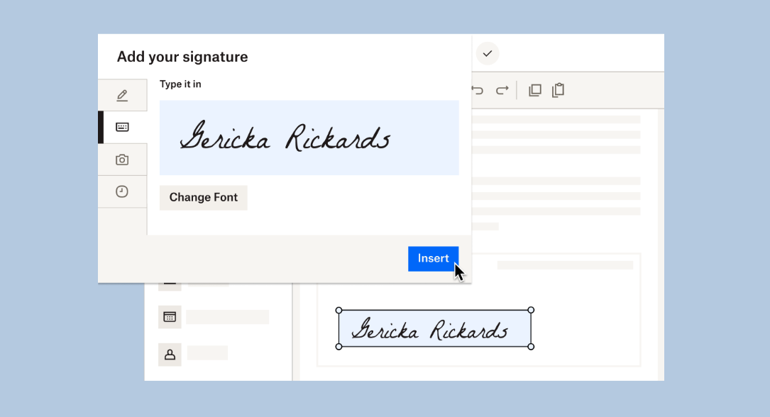 First, upload the documents and contracts you already use into the RightSignature platform. Then, drag and drop the form fields you need your signers to fill out — from signatures to data fields and text boxes.