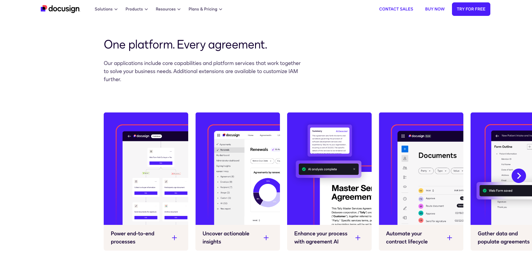 - Cons: no free plan; send limit of five documents per month on Personal plan; several features locked behind custom plans, including single sign-on, Salesforce document generation, and identity verification